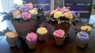 So, the cupcakes are Key Lime with a cream cheese buttercream and Pina Colada with coconut buttercream. It was my first time piping flowers and I picked it up suprisingly well. It was also my first time using gumpaste and stamens, which was also suprisingly easy. I was a big fan of the Key Lime cake- and the crusting buttercream, oh my god! My other half didn't share my opinion... he thought the Key Lime cake was way too lime-y. The Pina Colada cake was OK- not sure I would make it again. The cake recipe called for shredded coconut to be folded in and I wasn't a big fan of the texture.